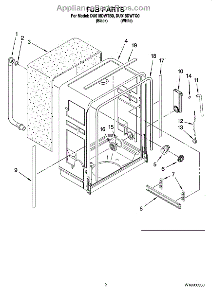 Parts for Whirlpool DU018DWTQ0: 02 - Tub Parts