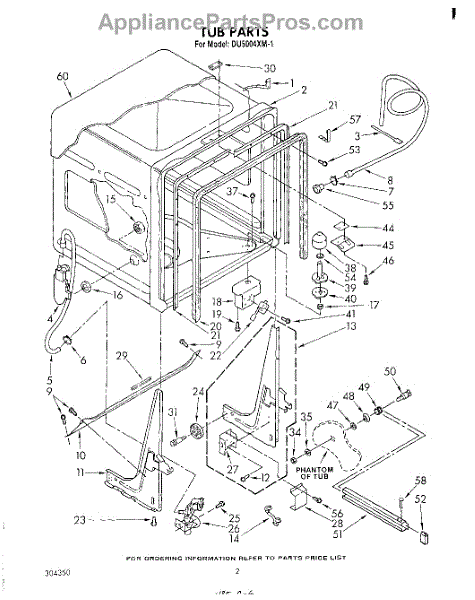 Parts for Whirlpool DU5004XM1: 02 - Tub , Literature And Optional Parts