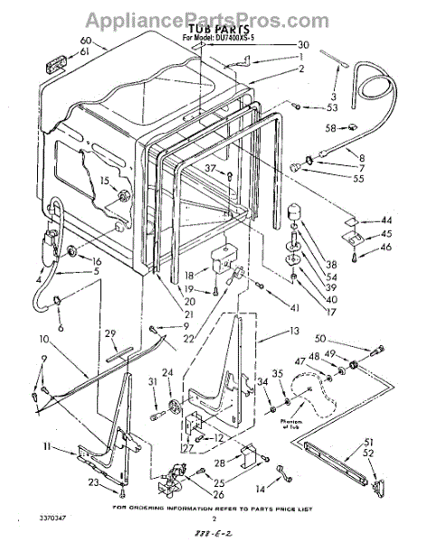 Parts for Whirlpool DU7400XS5: 02 - Tub , Literature And Optional Parts