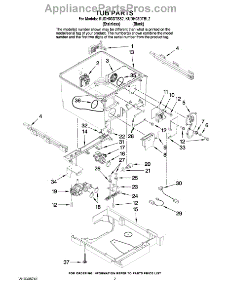 Parts for Kitchenaid KUDH03DTBL2: 02 - Tub Parts