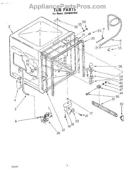 Parts for Whirlpool SHF6002W0: 06 - Tub Parts