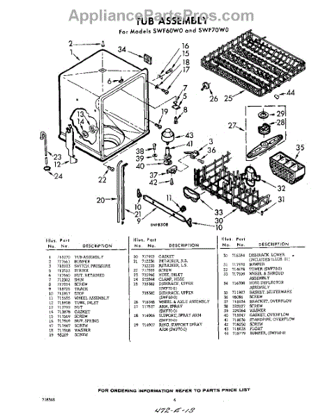 Parts for Whirlpool SWF60W0: 06 - Tub Parts