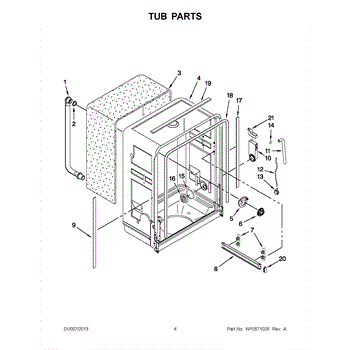 This dishwasher tub wheel mounts to the inner side of the tub and supports the rack track as it moves. Replacing a worn wheel restores smooth glide and helps keep the rack aligned during loading and unloading.