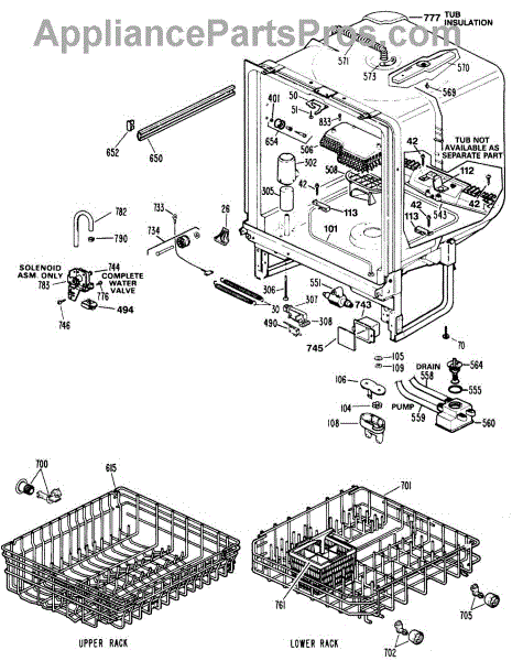 The Upper Rack is an OEM replacement part for GE dishwashers. It provides movable shelf space along the top of the dishwasher interior for washing plates, bowls, and other dishes. The shelves feature an adjustable design that accommodates various sizes and configurations of dishware. Causes of failure include normal wear and tear, accidental impacts that damage shelves or cleaning chemicals stripping away protective coatings. Symptoms of a bad upper rack can include: