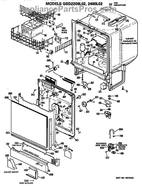 Parts for Ge GSD2200L02BW: Tub / Racks Parts