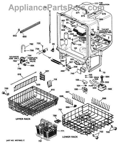 • Works with the dishwasher's fill and wash functions to maintain normal operation
