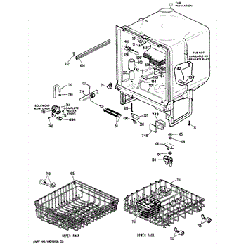 The Lower Dishrack is an OEM part for GE dishwashers. It provides a sturdy shelf for placing pots, pans, plates, and other dishware on the bottom level of the dishwasher interior. The lower dishrack supports dish loads, holding them securely in place during the wash cycles.