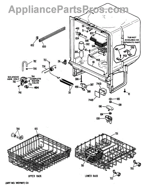 The Upper Rack is an OEM replacement part for GE dishwashers. It provides movable shelf space along the top of the dishwasher interior for washing plates, bowls, and other dishes. The shelves feature an adjustable design that accommodates various sizes and configurations of dishware. Causes of failure include normal wear and tear, accidental impacts that damage shelves or cleaning chemicals stripping away protective coatings. Symptoms of a bad upper rack can include: