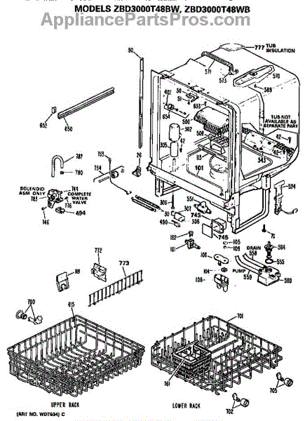 Parts for Ge ZBD3000T48BW: Tub / Racks Parts