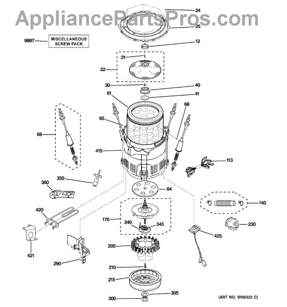 This genuine OEM part is sold individually. It is a transmission assembly for washing machines. The transmission assembly is the gearbox in the washing machine's motor that allows the washing machine to work at different speeds and different intensities. If the washing machine is no longer spinning properly and has lost its normal level of washing power, it could mean that the transmission assembly needs to be replaced. Luckily replacing this part is not as difficult as it might seem at first glance.To replace the transmission assembly, start by turning off all power to the washing machine. Proceed to remove the upper control panel. To do this, pull forward on the bottom of the console and remove the two retaining clips as well as the harness connector to the lid switch. Using a flathead screwdriver remove the clips. After this, remove the entire cabinet from the back panel to gain access to the interior of the washer. Next, remove the 7/16 bolt from the agitator and pull it straight up to remove it from the shaft. Once completed, access the motor and pump and remove by releasing the screws and tabs that attach it. Remove the wire harness attached to the transmission. Remove the bolts that secure the motor mount to the transmission and proceed to pull the old transmission out of its place. Install the new transmission and reassemble the other parts.This replacement part is compatible with General Electric, RCA, and Hotpoint brand washers.