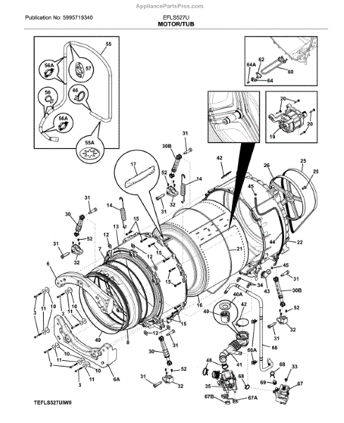 The Pulley Assembly is an OEM component specifically designed for Frigidaire front-loading washing machines. This assembly contains the plastic pulley wheel that works in conjunction with the belt drive system to power the agitator and basket movements.