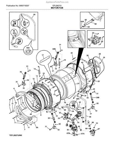 Parts for Electrolux EFLS627UIW1: Tubb / Motor Parts