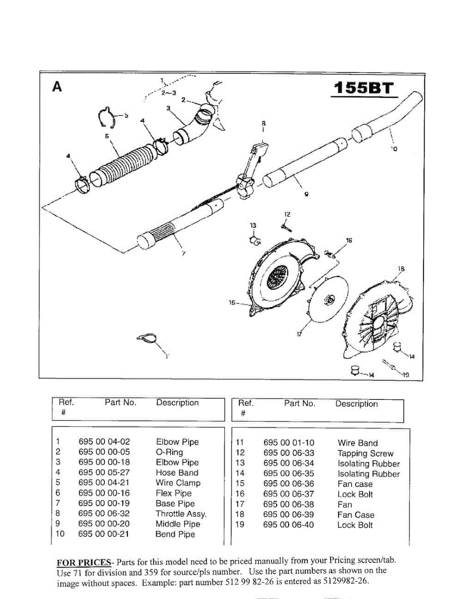 Parts for Husqvarna 155BT: Tubing & Blower Wheel Parts