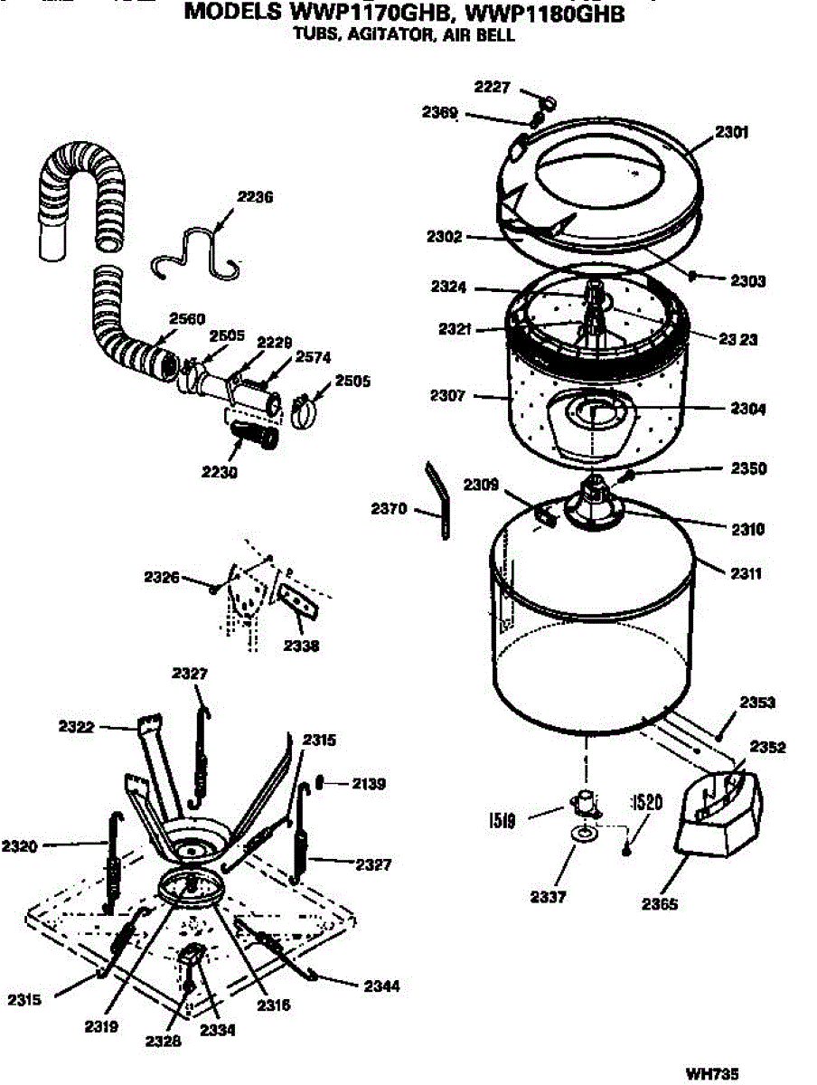 This suspension spring supports the washer tub and helps stabilize the drum during cycles, reducing excessive movement and vibration for smoother operation. It restores proper tub positioning and helps prevent noisy, off-balance spins. What it does: