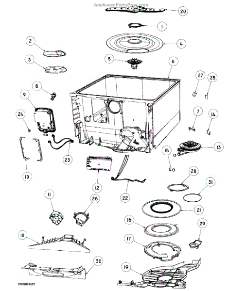 This spray arm assembly replaces a damaged or clogged lower spray arm to restore proper water distribution for better dishwasher cleaning coverage. Durable rotor-style arm directs wash water to rinse dishes and cookware. What it does: