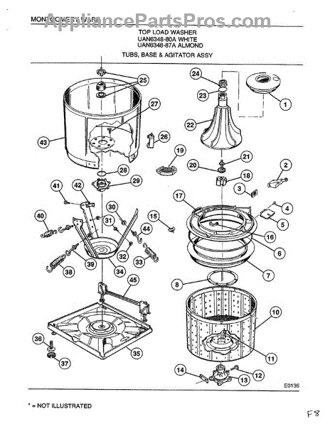 Parts for Frigidaire 6348A: Tubs, Base And Agitator Assembly Parts