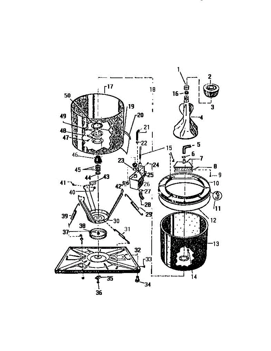 Suspension spring for washer tub support system. Replaces broken, stretched, or missing springs that no longer properly suspend the wash basket.