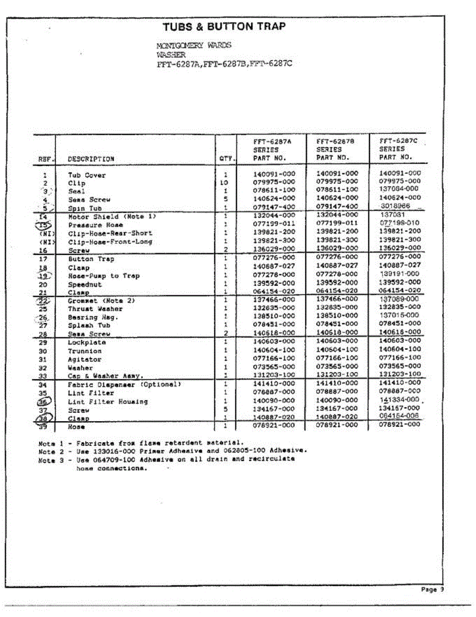 Parts for Frigidaire 6287C: Tubs / Button Trap Page 2 Parts