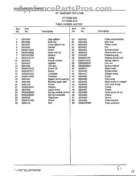 Parts for Frigidaire 6389-80A: Tubs, Hoses, Motor Page 2 Parts