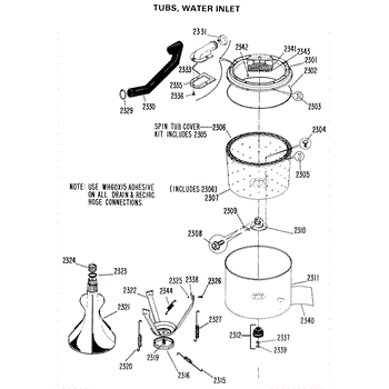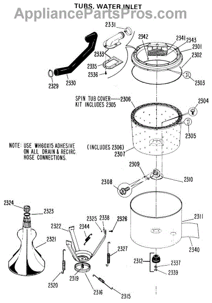 Parts for Ge WWP1170CAW: 04 - Tubs, Water Inlet Parts