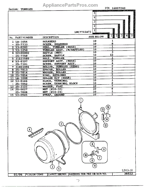 Parts for Maytag LNC7741A71: Tumbler Parts