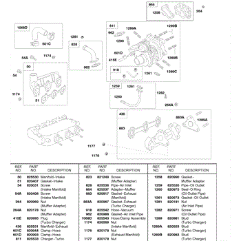 Parts for Briggs & Stratton 58A447-0205-E2: Turbo Charger, Intake Manifold, Exhaust Manifold Parts