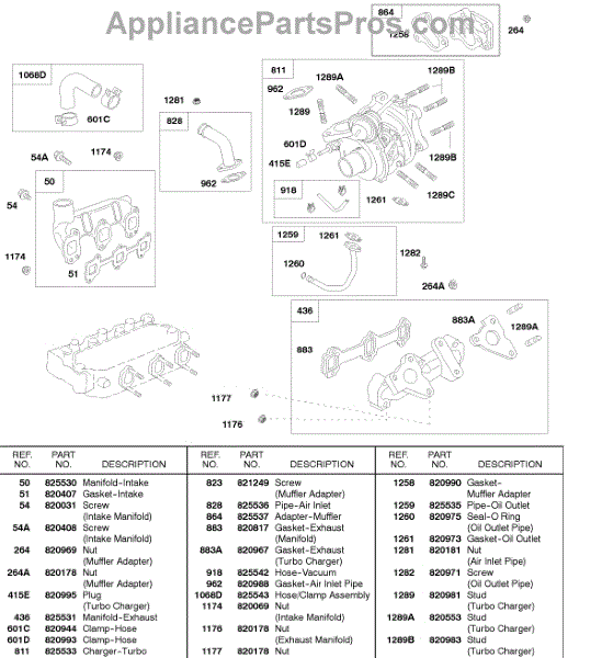 Parts for Briggs & Stratton 58A447-0334-E2: Turbo Charger, Intake Manifold, Exhaust Manifold Parts