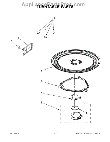 *** Note: This glass tray has 3 triangles to engage the coupler. In some cases, the factory used a tray that has 3 partial-circles. For that glass tray use part# 4393799. ***