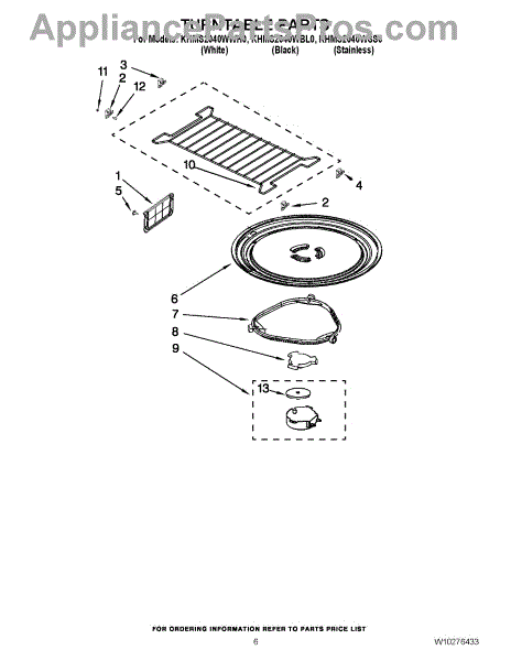 *** Note: This glass tray has 3 partial-circles to engage the coupler. In some cases, the factory used a tray that has 3 triangles. For that glass tray use part# W11367904. ***