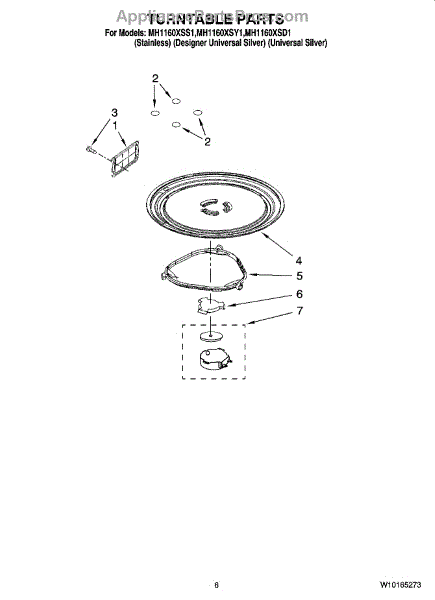 Parts for Whirlpool MH1160XSY1: 05 - Turntable Parts