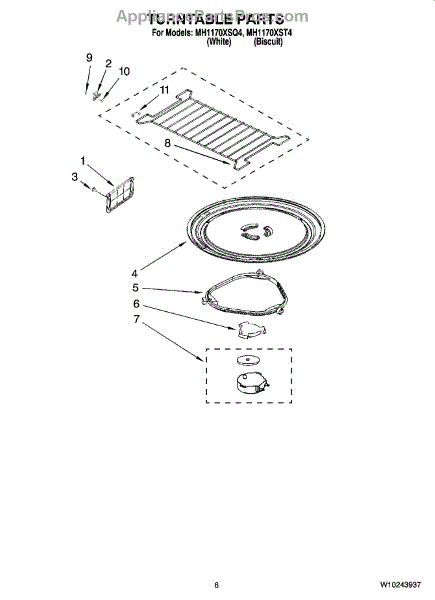 Parts for Whirlpool MH1170XSQ4: 05 - Turntable Parts