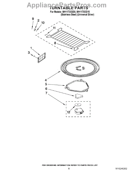 Parts for Whirlpool MH1170XSS5: 05 - Turntable Parts