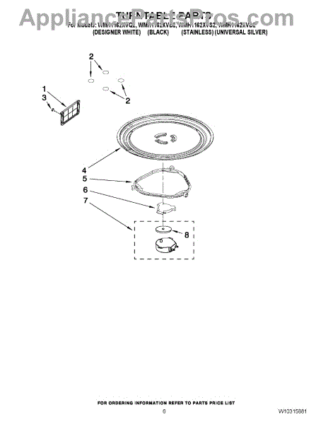 Parts for Whirlpool WMH1162XVD2: 05 - Turntable Parts