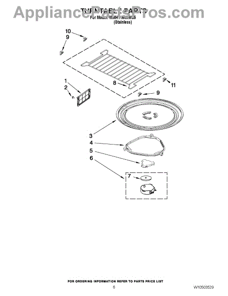 *** Note: This glass tray has 3 triangles to engage the coupler. In some cases, the factory used a tray that has 3 partial-circles. For that glass tray use part# 4393799. ***