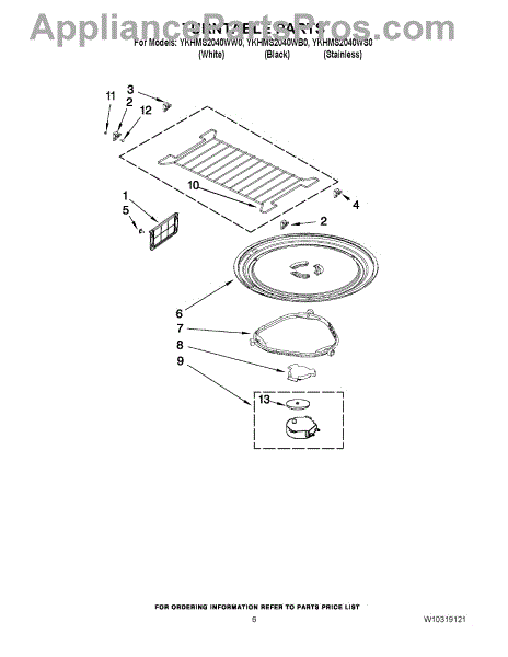 Parts for Whirlpool YKHMS2040WW0: 05 - Turntable Parts