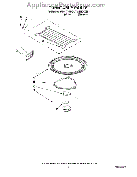 *** Note: This glass tray has 3 partial-circles to engage the coupler. In some cases, the factory used a tray that has 3 triangles. For that glass tray use part# W11367904. ***