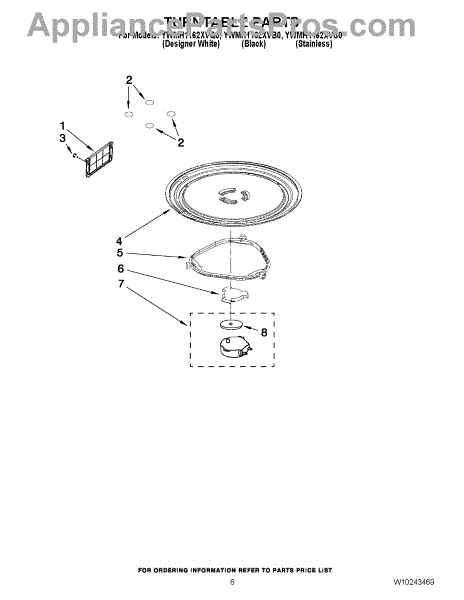 *** Note: This glass tray has 3 partial-circles to engage the coupler. In some cases, the factory used a tray that has 3 triangles. For that glass tray use part# W11367904. ***
