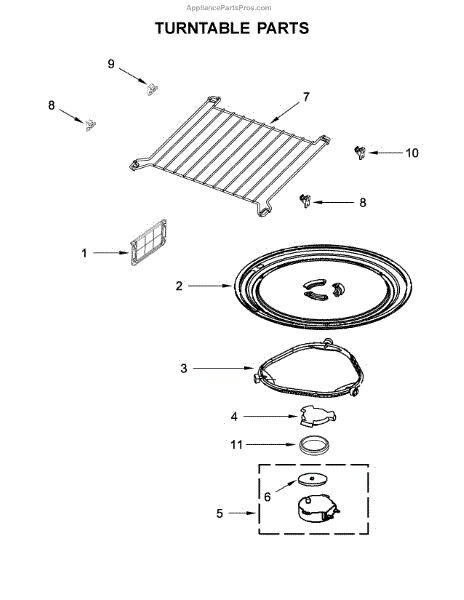 The Turntable Tray is an OEM part for Whirlpool microwaves. It sits on the turntable support and rotates to ensure even cooking and heating of food. The tray is designed to withstand high temperatures and is essential for the microwave’s efficient operation.