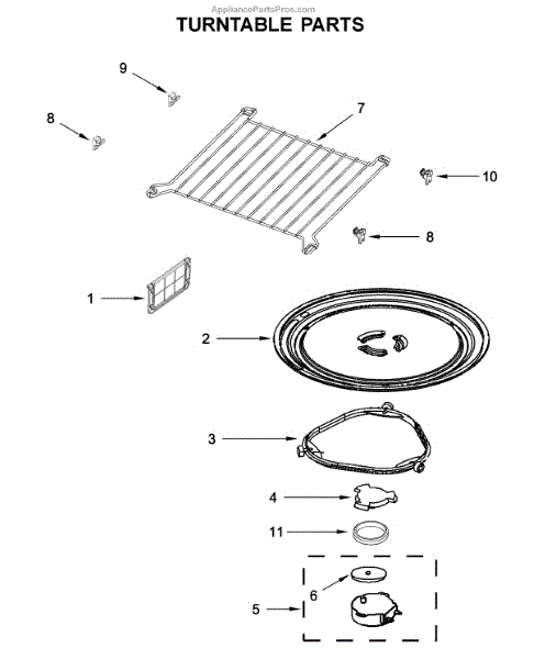 The Turntable Tray is an OEM part for Whirlpool microwaves. It sits on the turntable support and rotates to ensure even cooking and heating of food. The tray is designed to withstand high temperatures and is essential for the microwave’s efficient operation.