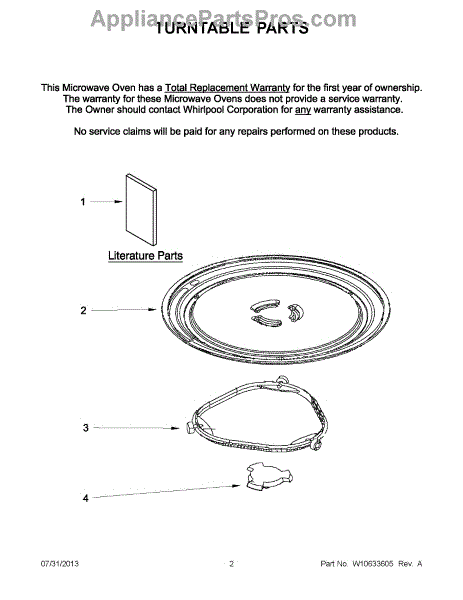 Parts for Kitchenaid YKCMS1655BS0: 01 - Turntable Parts
