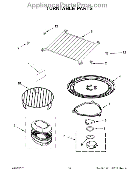 The Turntable Tray is an OEM part for Whirlpool microwaves. It sits on the turntable support and rotates to ensure even cooking and heating of food. The tray is designed to withstand high temperatures and is essential for the microwave’s efficient operation.