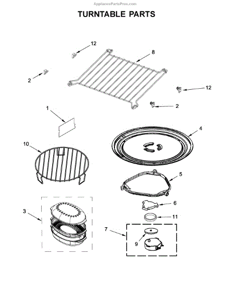 The Turntable Tray is an OEM part for Whirlpool microwaves. It sits on the turntable support and rotates to ensure even cooking and heating of food. The tray is designed to withstand high temperatures and is essential for the microwave’s efficient operation.