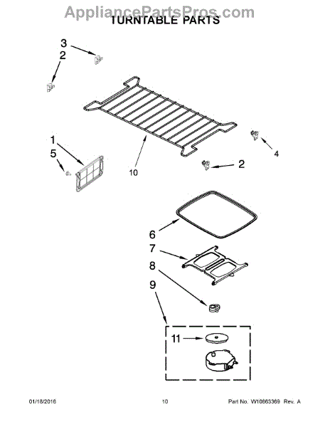 The Motor-Turn is an OEM part compatible with Whirlpool microwaves. Located inside the microwave cavity on the turntable mechanism, the motor-turn contains the turntable motor and drive components.