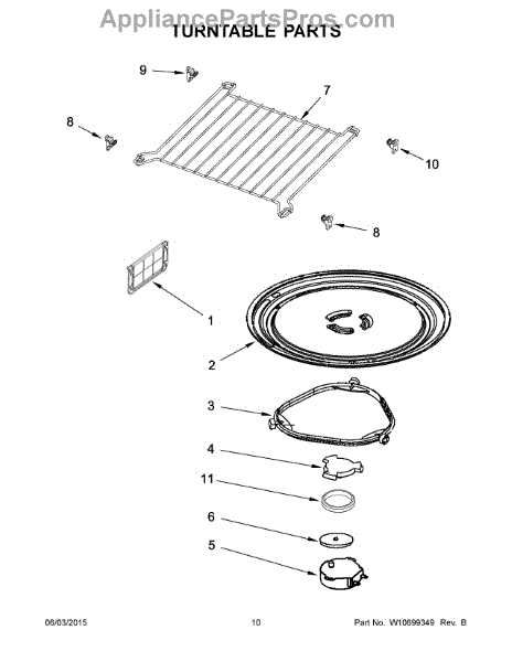 The Turntable Tray is an OEM part for Whirlpool microwaves. It sits on the turntable support and rotates to ensure even cooking and heating of food. The tray is designed to withstand high temperatures and is essential for the microwave’s efficient operation.