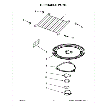 • Replace if cracked/warped or if rollers are worn; symptoms include tray not turning, intermittent rotation, scraping/grinding noises, wobbling, or uneven heating