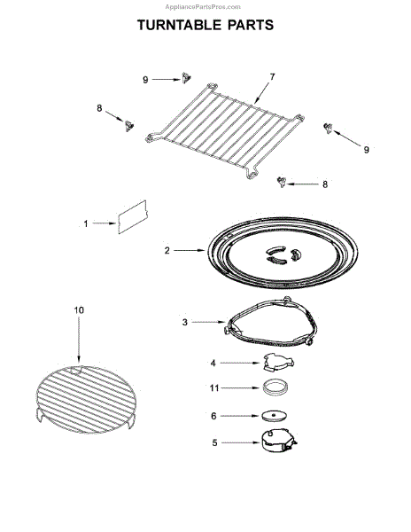 The Turntable Tray is an OEM part for Whirlpool microwaves. It sits on the turntable support and rotates to ensure even cooking and heating of food. The tray is designed to withstand high temperatures and is essential for the microwave’s efficient operation.
