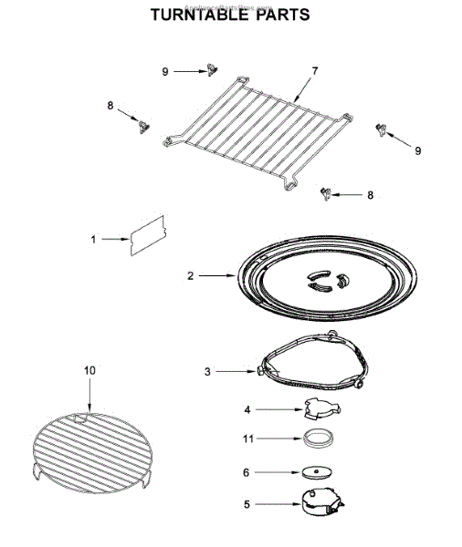 The Turntable Tray is an OEM part for Whirlpool microwaves. It sits on the turntable support and rotates to ensure even cooking and heating of food. The tray is designed to withstand high temperatures and is essential for the microwave’s efficient operation.