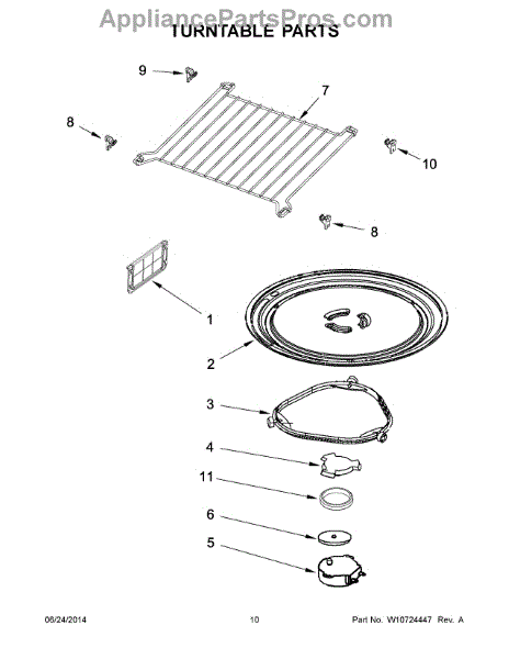 The Turntable Tray is an OEM part for Whirlpool microwaves. It sits on the turntable support and rotates to ensure even cooking and heating of food. The tray is designed to withstand high temperatures and is essential for the microwave’s efficient operation.