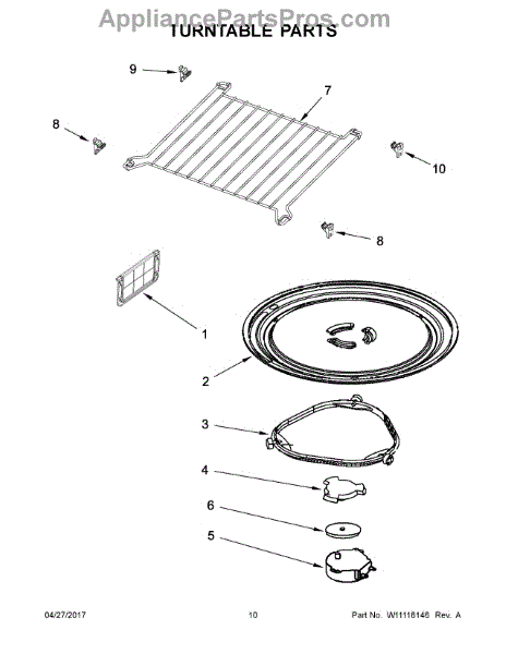 The Turntable Tray is an OEM part for Whirlpool microwaves. It sits on the turntable support and rotates to ensure even cooking and heating of food. The tray is designed to withstand high temperatures and is essential for the microwave’s efficient operation.
