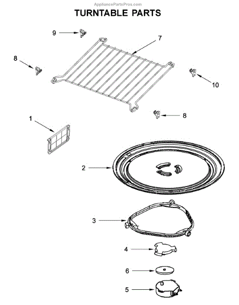 The Turntable Tray is an OEM part for Whirlpool microwaves. It sits on the turntable support and rotates to ensure even cooking and heating of food. The tray is designed to withstand high temperatures and is essential for the microwave’s efficient operation.